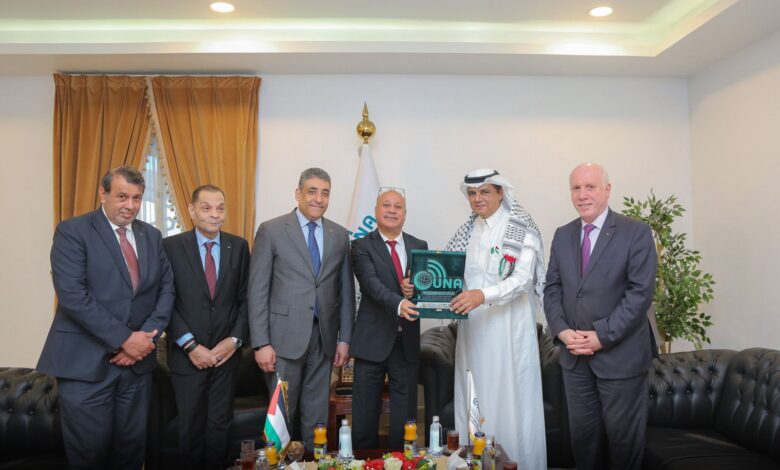 جدة (يونا) – نقل وفد فلسطيني رفيع المستوى، تحيات رئيس دولة فلسطين محمود عباس، للمدير العام لاتحاد وكالات أنباء دول منظمة التعاون الإسلامي “يونا” الأستاذ محمد بن عبدربه اليامي، تقديرا لجهود “يونا” في دعم القضية الفلسطينية إعلاميا.